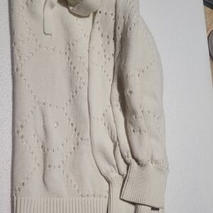 Elegant ivory sweater with a cozy cowl neck. Perfect for warmth and style.