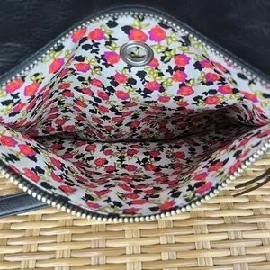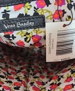 Vera Bradley Gallatin Black Leather Crossbody Bag Purse Floral Interior NWT