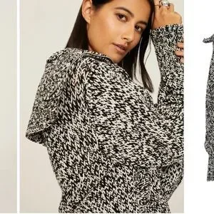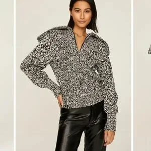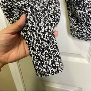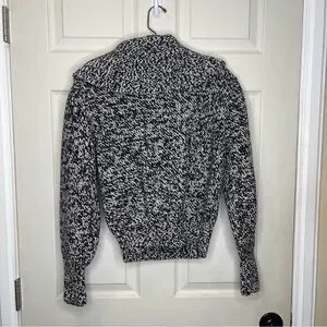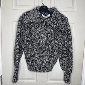 Black knit (72% Wool, 28% Nylon). Top. Long sleeves. Quarter zip. Front zipper closure.