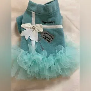 Barkfest at Sniffany’s- Teal Dog Dress with Tulle Skirt- Size Small 🐾