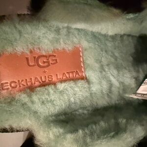 UGG x Eckhaus Latta Special Collection Collaboration Luxurious mules with a plush shearling lamb fur black exterior. Soft mint green interior adds a pop of color. Perfect blend of style and comfort. Brand new with box.