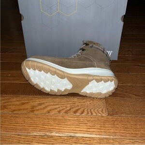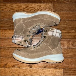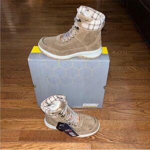 Khombu Sterling Faux Shearling Lined Boots Brown Leather Women’s 11 Plaid Trim