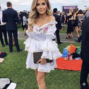 Alice McCall White Dress with Pink Floral Embroidery
