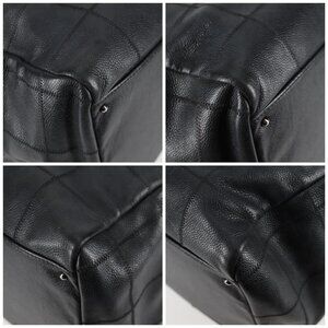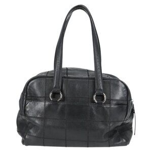 CHANEL Choco Bar Hand Bag Grained Calf Skin Black Silver gold