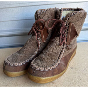 Rare Vintage Leather Upper Winter Boots Faux Fur Sherpa Lined Women’s Sz 10