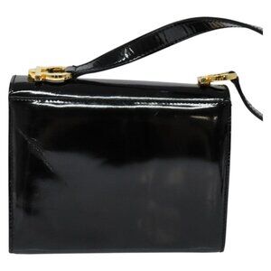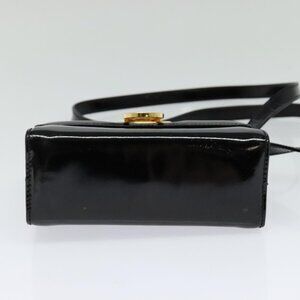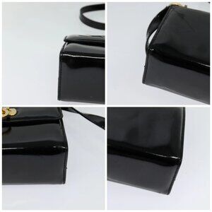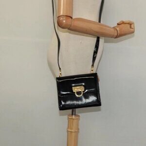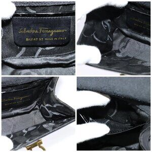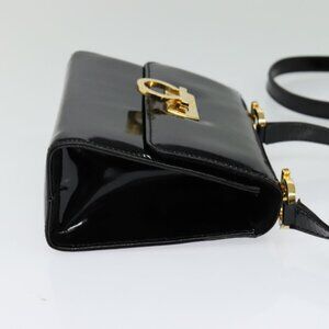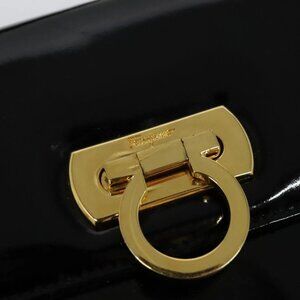 Salvatore Ferragamo Gancini Shoulder Bag Enamel Black Gold Auth