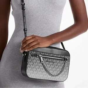 Crafted from ombré Signature-print canvas for novelty appeal, the Jet Set crossbody bag is designed in a sleek, compact silhouette. A polished chain-link zipper pull delivers standout style, while the pocketed interior is perfectly sized for a day’s worth of essentials. Wear it while commuting, running errands or taking a weekend getaway.