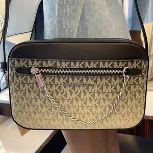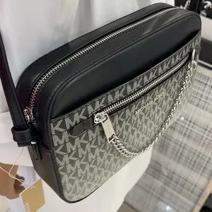 MICHAEL KORS Jet Set Lg Ombré Signature Logo EW Crossbody Body East West Black