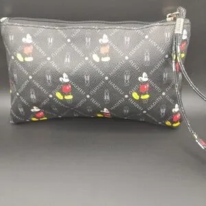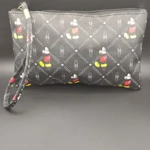 Stylish black wristlet featuring Mickey Mouse design. Perfect for casual outings.