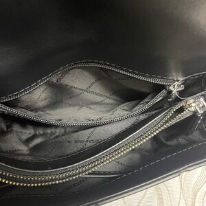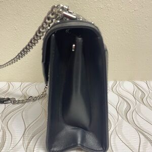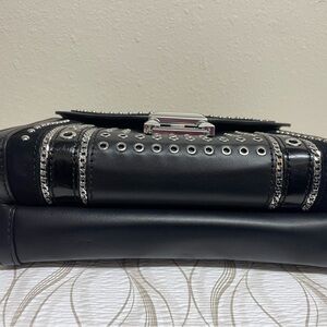Stylish black crossbody with silver studs. Eye-catching design. Perfect for modern elegance. Can be worn crossbody, in hand, or on shoulder.