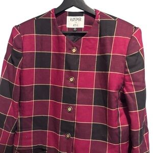 Kasper ASL Red Vintage Plaid Blazer Jacket Size 10