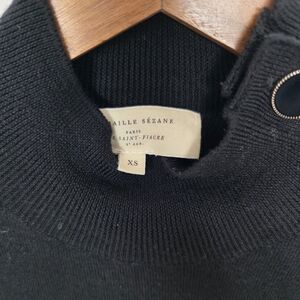 Sezane Jacon Jumper Merino wool long sleeve sweater High neckline closed by a shoulder button tab. Excellent pre-owned condition See photos for measurements Size XS