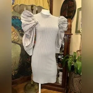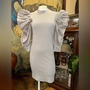 Capture the essence of "minimalist glam" with this stunning Athina mini dress. The piece features a striking contrast between the soft, stretchy ribbed knit body and the voluminous, dramatic puff sleeves that create an instant statement silhouette. Crafted from 100% cotton, this dress offers breathable comfort without sacrificing its high-fashion edge. Whether you're dressing it up for a night out or keeping it chic for a daytime event, the unique texture and avant-garde sleeve design make it a versatile must-have for any modern wardrobe.