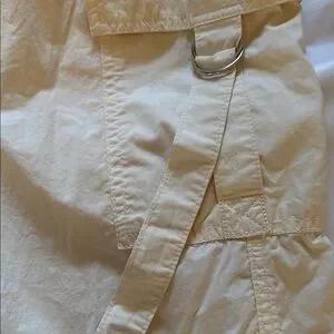 Chic cream cargo pants with elastic waist.
