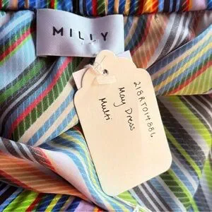 Milly, Dress, Multi Color, Multicolor, Multi-Color, Colorful, Vibrant, Off The Shoulder, Asymmetrical, Midi, Long, Ruffle, Ruffles, Sleeveless, Blue, Green, Polyester
