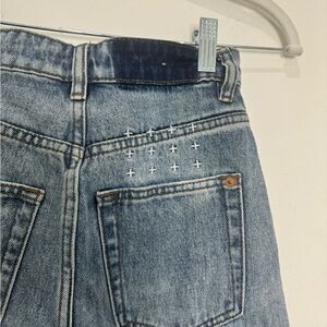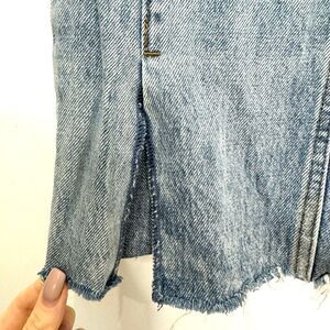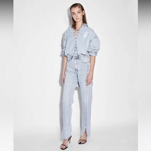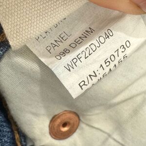 Excellent condition. Raw hem, slits in the front on the bottoms. No stretch denim.