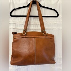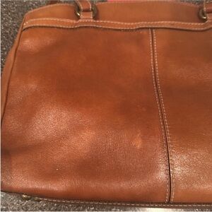 Gorgeous purse. In great preowned condition. Beautiful tooled leather in a poppy design. Gorgeous brown leather. Straps in excellent condition. Outside zipped pocket. Large middle pocket with interior storage. Two outer pockets with magnetic closures. Stunning bag. Roughly 10”x 14”