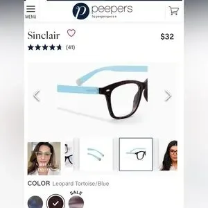 Peepers Sinclair Blue Light Tortoise and Blue Color reading glasses 1.5 strength