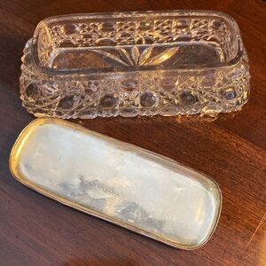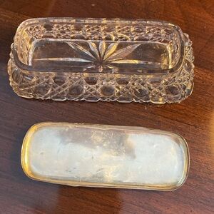Antique Sterling cut Glass /Elegant silver and glass trinket box.