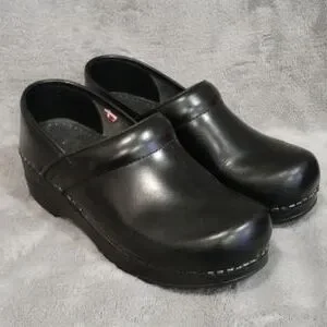 0804 Sanita Leather Clogs, Black, Size EUR 37 (US 6.5). Pre-owned in Great Condition!! CA-8