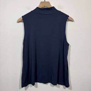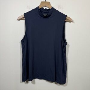 Eileen Fisher Fine Jersey Mock Neck Tank Blouse Top Womens Small Blue Minimalist