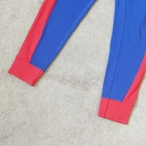 VGUC women's red and blue Christmas nutcracker/wooden solder pajama set. Long sleeve top with gold and black printed graphic, blue slim fit jogger style pants with red stripe on side and red cuff. Cozy and cute!