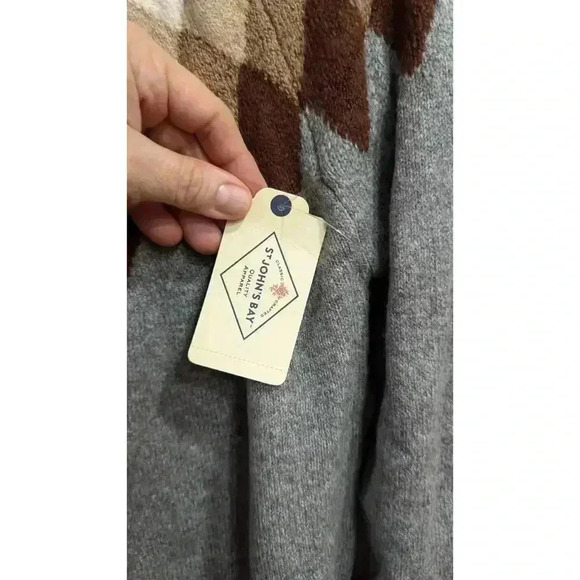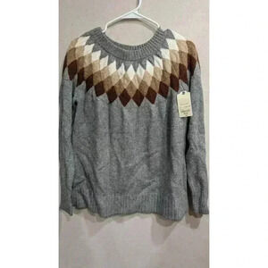 Women's grey St Johns Bay Sweater with earthy diamond pattern at collar. NEW with tags!!! See pics for measurements
