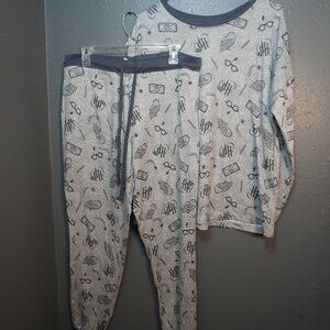 Wizarding World Harry Potter Womens Cozy 2 Piece Pajama Set Gray Size Medium. This Set is preowned with small signs of wear such as color fade and peeling but still looks in good condition. With this set you would be super comfy and cooling with the thin material. If you have any questions please feel free to message me and I will get back to you as soon as possible.