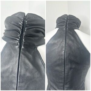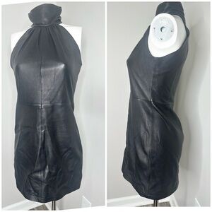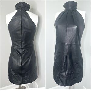 Elegant Black Halter Leather Mini Dress- PRELOVED- MEDIUM