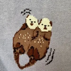 Stylish lavender sweater with brown knit accents. Ideal for everyday comfort.