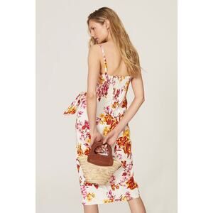 This flattering floral Great Jones dress goes ultramodern with unexpected pops of color.