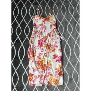 White and pink floral printed cotton (98% cotton, 2% elastane). Sheath. Sleeveless. V-neckline. Invisible back zipper. Hook-and-eye closure. Fully lined. 37.5" from shoulder to longest hemline. Imported.
