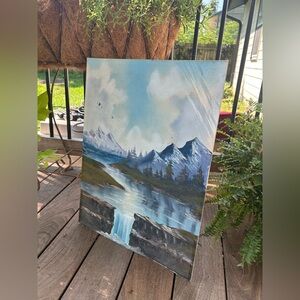 Vintage Oil Painting Edward Currier Nature Scene Mountain View 18”x24” Wall Art