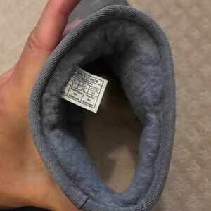 Cozy gray suede boots with plush lining. Ideal for cold weather.