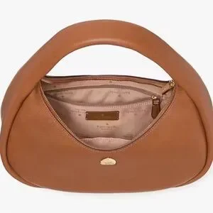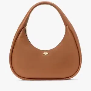 Done in soft pebbled leather, our Kayla shoulder bag has a cool crescent silhouette and signature spade logo. Statement bag. Kayla shoulder bag in the gorgeous warm gingerbread color is a must have! It looks so luxurious!