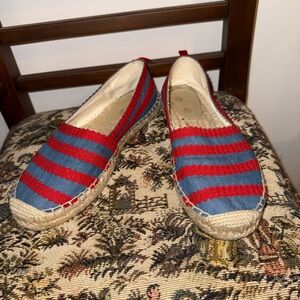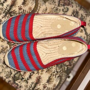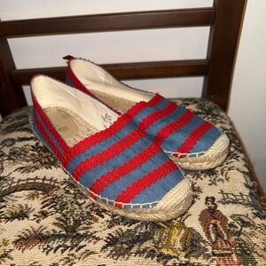 BODEN Violette Espadrilles in Chambray and Red Pop Ric Rac, sz 36 EU