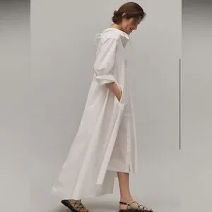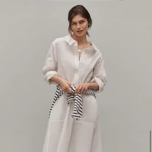 Chic soft white shirt dress with button-up front and button down back . Lightweight and versatile. Perfect for spring, summer, and into fall
