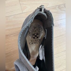 Elevate your style with these Vince Camuto lace-up boots, featuring a sleek gray hue and intricate criss-cross lacing. Designed for both comfort and flair, these boots are perfect for adding a touch of sophistication to any outfit.