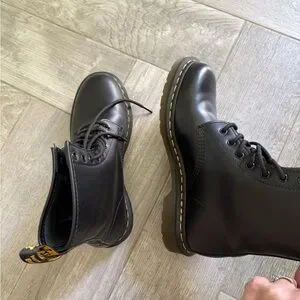 Classic black leather boots with sturdy construction. Iconic design with lace-up front. Only worn once with no signs of wear.
