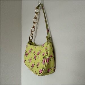 HOUSE OF WANT Vegan Leather Floral Print Shoulder Bag with Gold Chain
