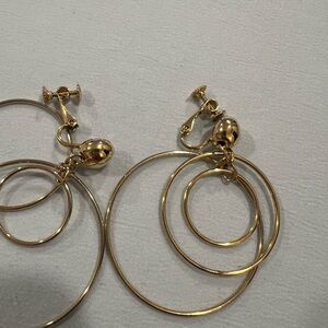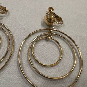 Elevate your style with these exquisite triple hoop gold clip-on earrings. Perfect for any occasion.