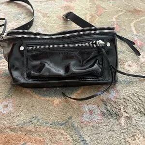 Chic black leather fanny pack by Rag & Bone. Features a modern design with practical compartments. Perfect for everyday use. New. Never worn.