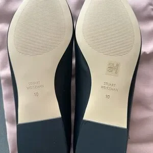 Chic Stuart Weitzman flats with a pointed-toe design. Features a classic black color and elegant strap detail.