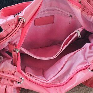 Women Fashion Shoulder Bag Purse Pink Faux Vegan Leather Bag
