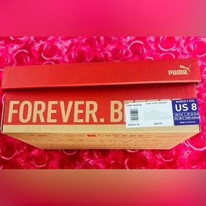 Chic Puma sneakers in white with gold accents. Perfect blend of style and comfort. Ideal for casual wear.
