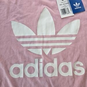 Adidas, Adidas Originals, Trefoil, Trefoil Boxy Tee, T-shirt, women's, top, shirt, pink, light pink, true pink, white logo, new with tags, NWT, size large, L, casual, athletic, sportswear activewear sports soccer football dance hipster hip-hop loose fit summer spring mountain hiking