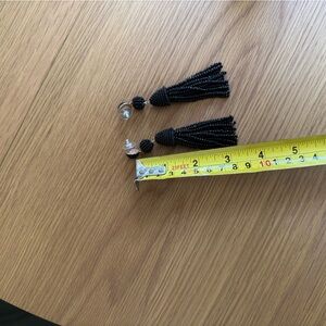 In great condition! Add a touch of elegance to your outfit with these stunning black beaded tassel earrings. Perfect for any occasion.