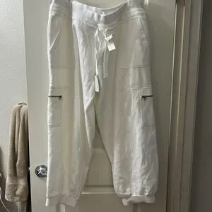 NWT Anthropologie Daily Practice Comfortable white jogger pants with drawstring waist. These are made of a very soft fleece. Have functional zippered pockets. Really cute and stylish. Ideal for everyday wear. These are in excellent condition and have never been worn. Please feel free to ask questions and make me an offer! Thank you!