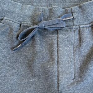 Lululemon City Sweat Pant Slim Heathered True Navy Size Small, inseam is approximately 28’’. Please see photos, there is some damage to the aglets but a great pair of sweatpants that were only worn a few times by my son.