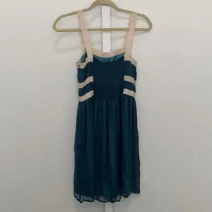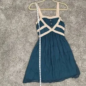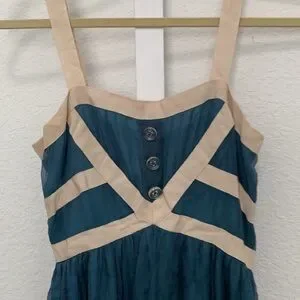 Burlapp Anthropologie Turquoise Cream Trim Silk Mini Dress